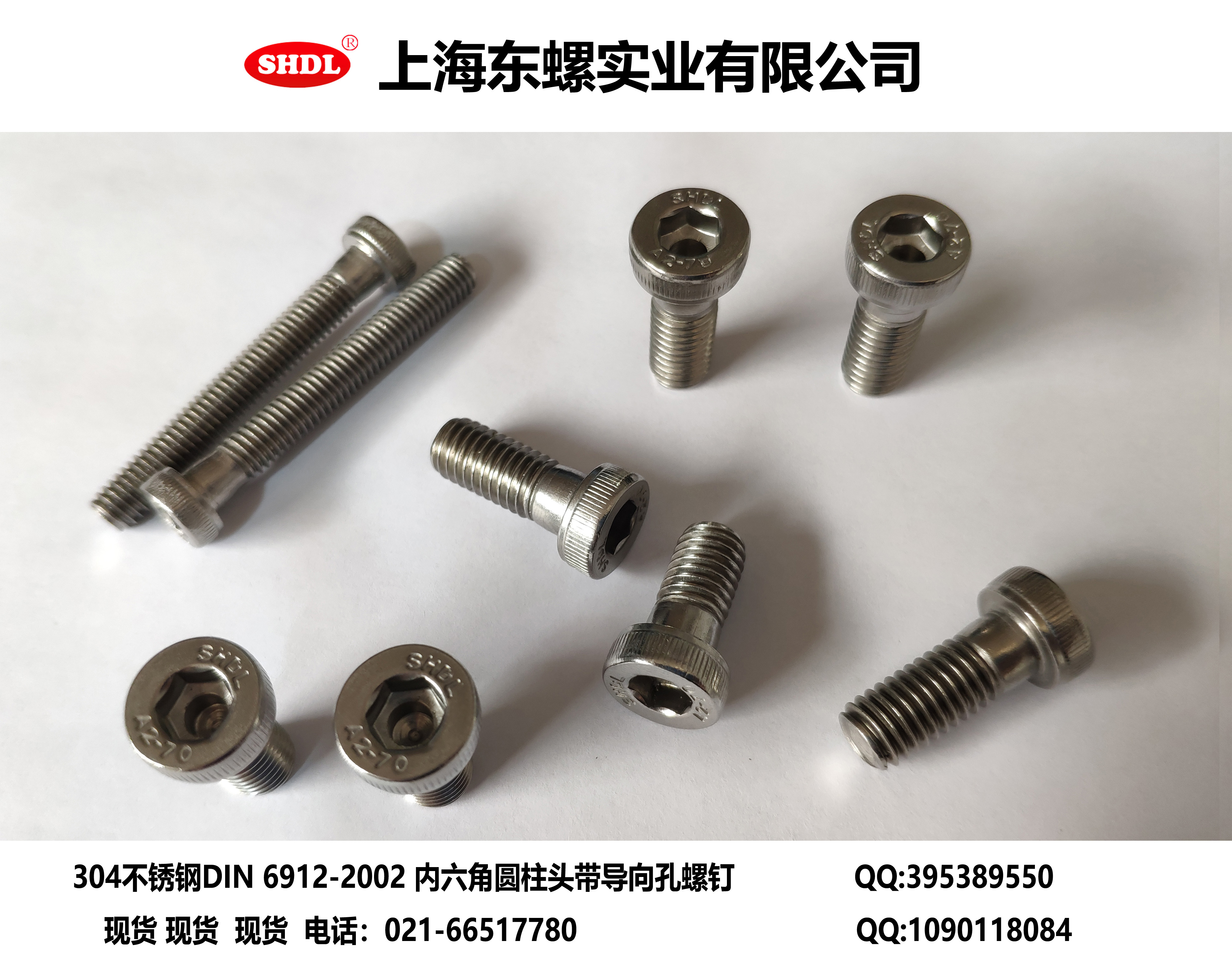 304不銹鋼DIN6912薄頭內六角帶導向孔螺絲內六角螺絲,規格:M6-M12,表面處理:洗白等.